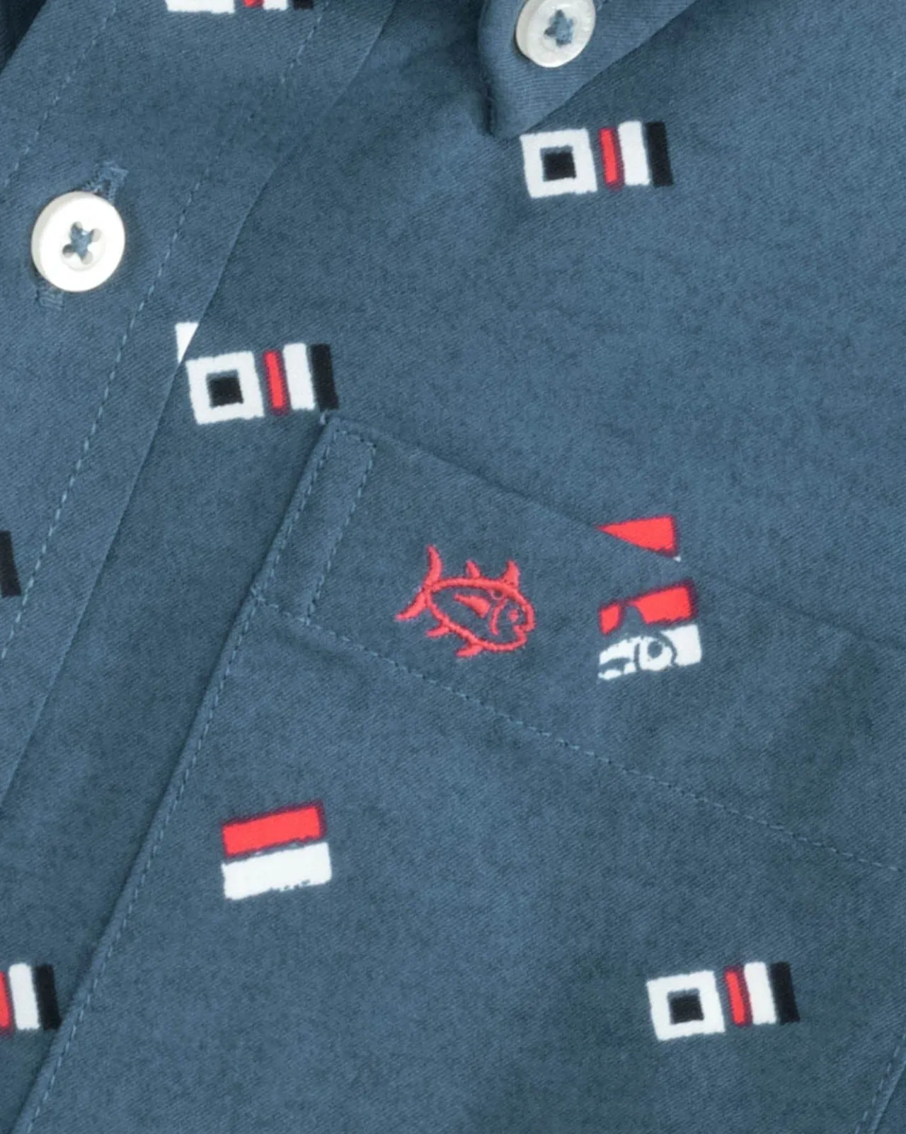 Signal Upscale But Not Uptight Southern Coastal Style In Our Nautical Symbol Intercoastal Sport Shirt. Stitched From Flexible, Wicking Fabric, This Button-Down Flies The Style Flag Wherever Their Footsteps Lead. Available In Youth And Men’S Sizes.