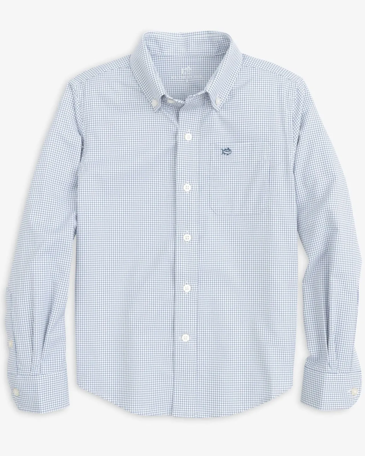 Elevate His Wardrobe With Our Rosemont Tattersall Sport Shirt. This Premium Shirt Is Crafted From A Blend Of High-Quality Fabric That Offers A Perfect Combination Of Stretch, Comfort, And Durability. The Seven Seas Blue Tattersall Print, Button-Down Collar, And Adjustable Cuffs Make This Shirt A Stylish And Versatile Option For Any Occasion. The Upf Protection, Wicking, And Quick-Dry Properties Ensure He Stays Comfortable Throughout The Day. Show Off His Impeccable Sense Of Style With This Unique And Elegant Button-Down Shirt.