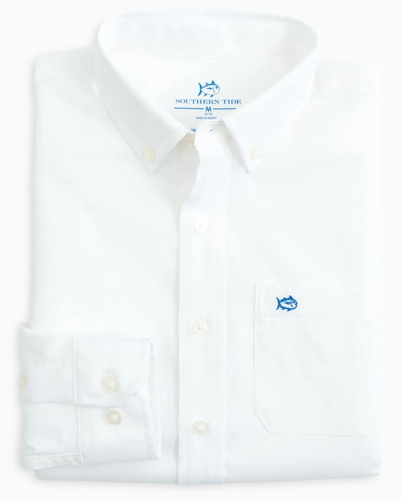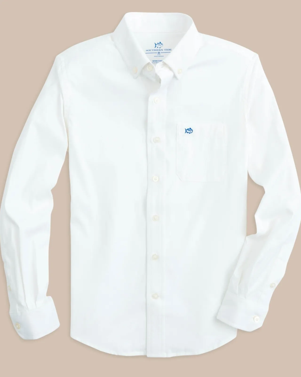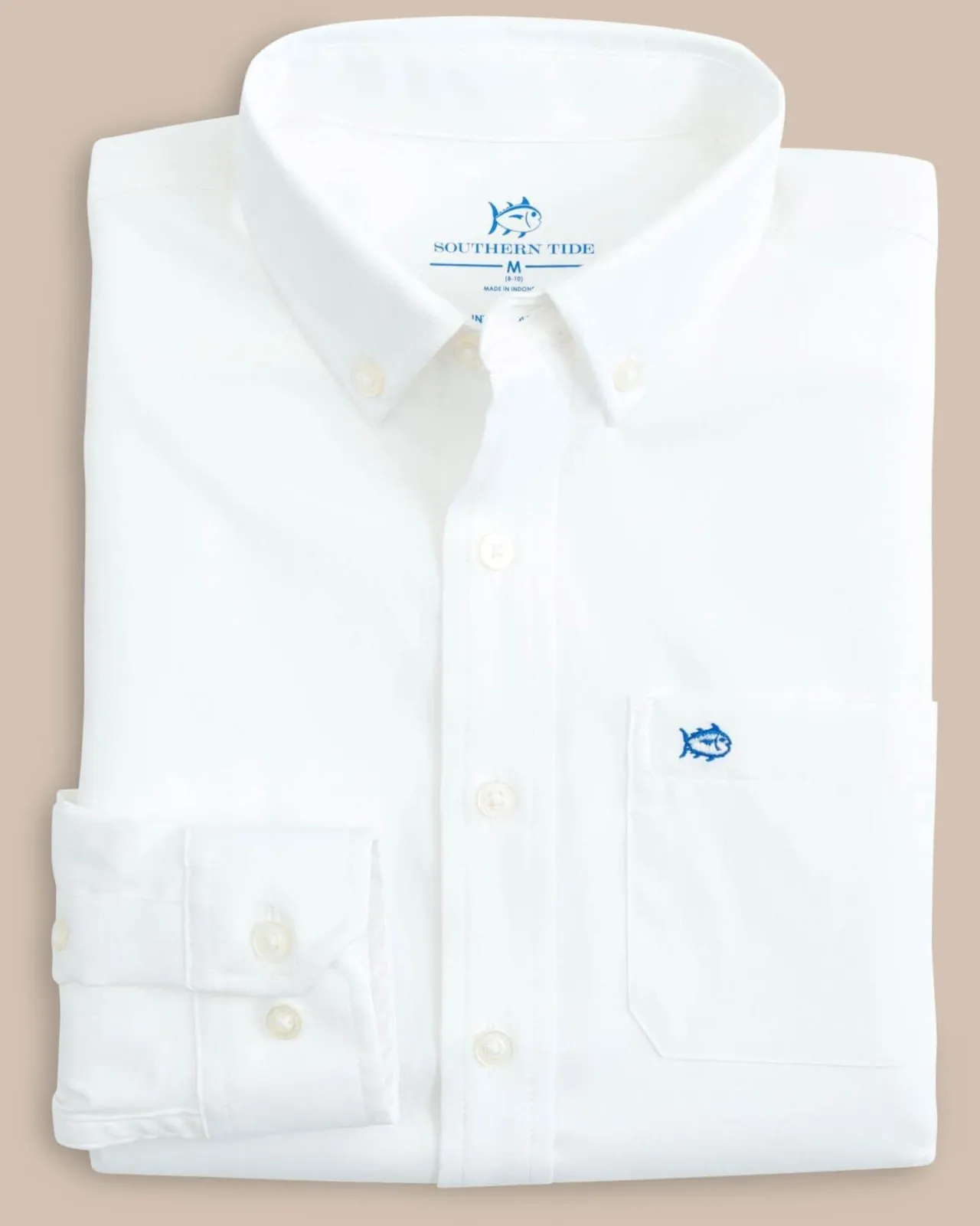Southern Tide Boys Solid Intercoastal Button Down Shirt Classic White Hot