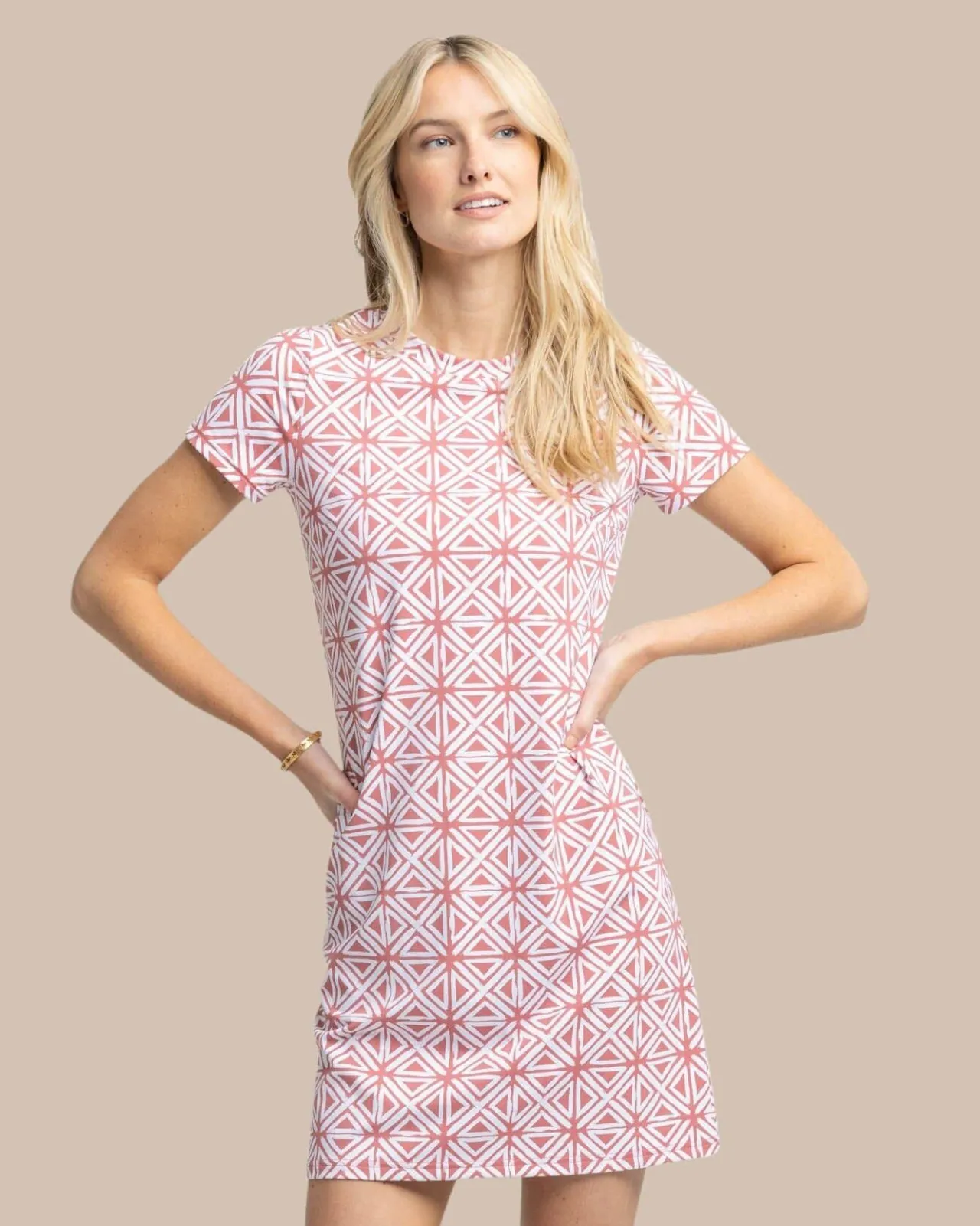 We’Re Taking T-Shirt Dresses To The Next Level. Chanelle Is The Ultimate In Chic Comfort With Short-Sleeves, A Flattering Crew-Neck, And An All-Over Geometric Print That Adds Undeniable Style To An Elegant Silhouette. Wicking, Uv-Protective Material Keeps You Cool And Comfortable While You Enjoy An Elevated Take On A Wardrobe Staple. Pair It With Simple White Sneakers For Day Trips Or Dress It Up With A Cardigan And Booties For Nights On The Town.