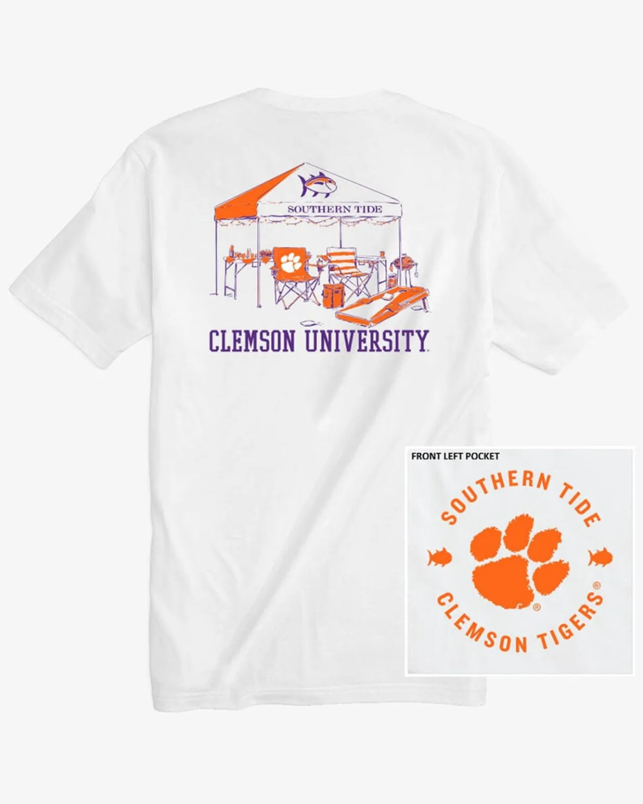 The Cornhole Tailgate T-Shirt Is An Essential Addition To Any Clemson Tigers Fan’S Game Day Wardrobe. This Vibrant Tee Showcases A Lively Tailgate Scene Complete With Cornhole Boards, Capturing The Pre-Game Festivities In Style. Crafted From High-Quality Cotton, It Offers Superior Comfort, Breathability, And Durability, Making It The Ideal Choice For All-Day Wear. Show Off Your School Pride And Support Clemson Tigers On Game Day With This Classic T-Shirt.
