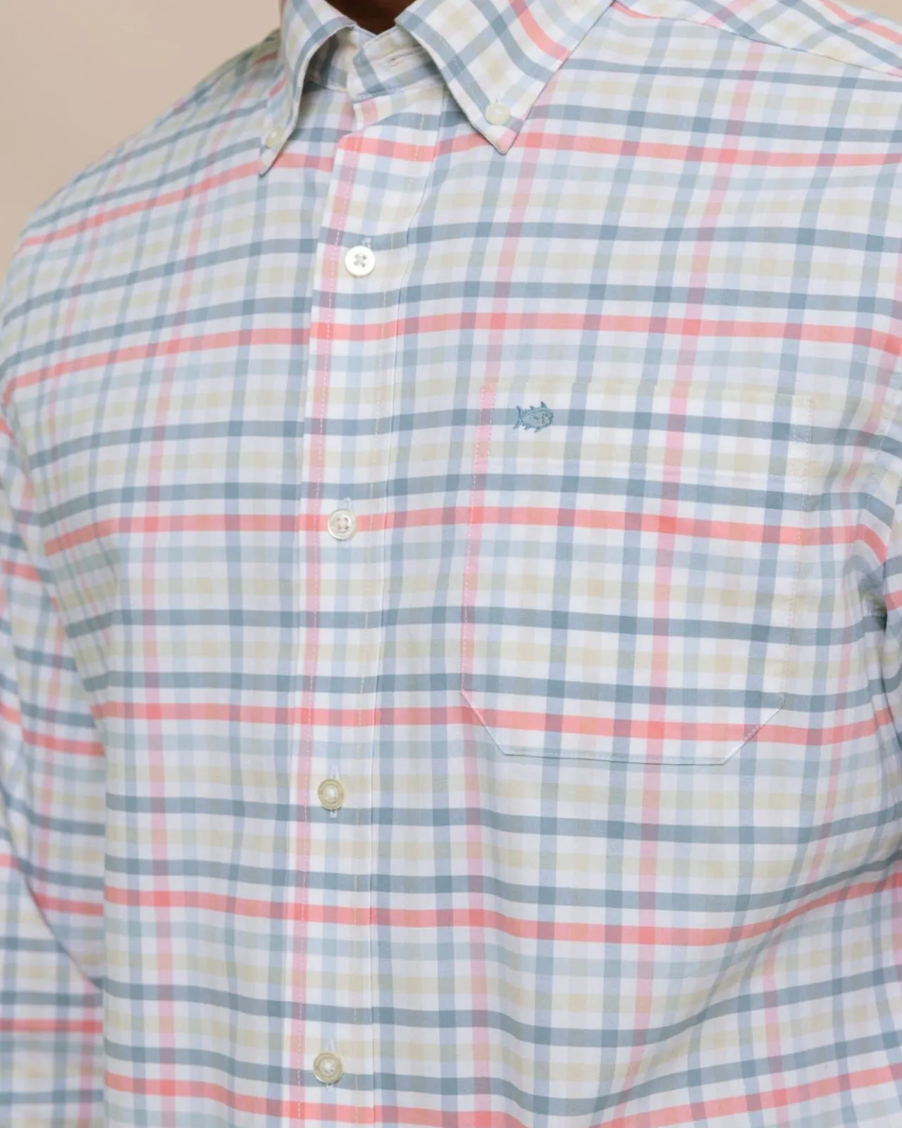 Open Your Closet To The Open-Weave Gingham Print Of This Long-Sleeve Sport Shirt. Classic Coastal Colors Pair With Our Signature Comforts To Fit With Your Wardrobe. Flexible, Wicking Material And A Two-Button Adjustable Sleeve Provide The Comfort You Need From The Clubhouse To The Workplace.
