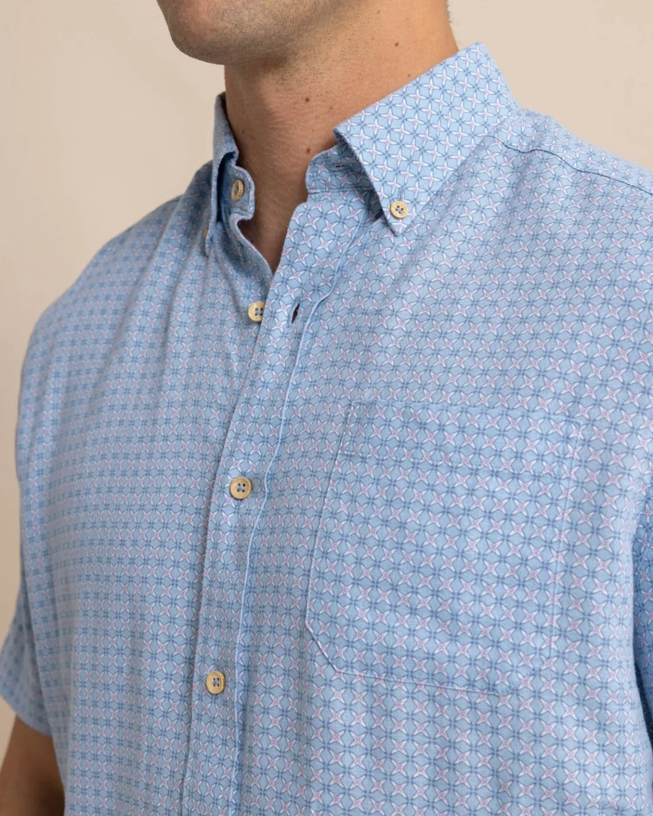Our Classic Linen Rayon Sport Shirt Gets A Bold Makeover Thanks To The Lively White Lotus Print. Like Little Compasses Pointing The Way, You’Ll Be Able To Live In The Moment Without Breaking A Sweat.