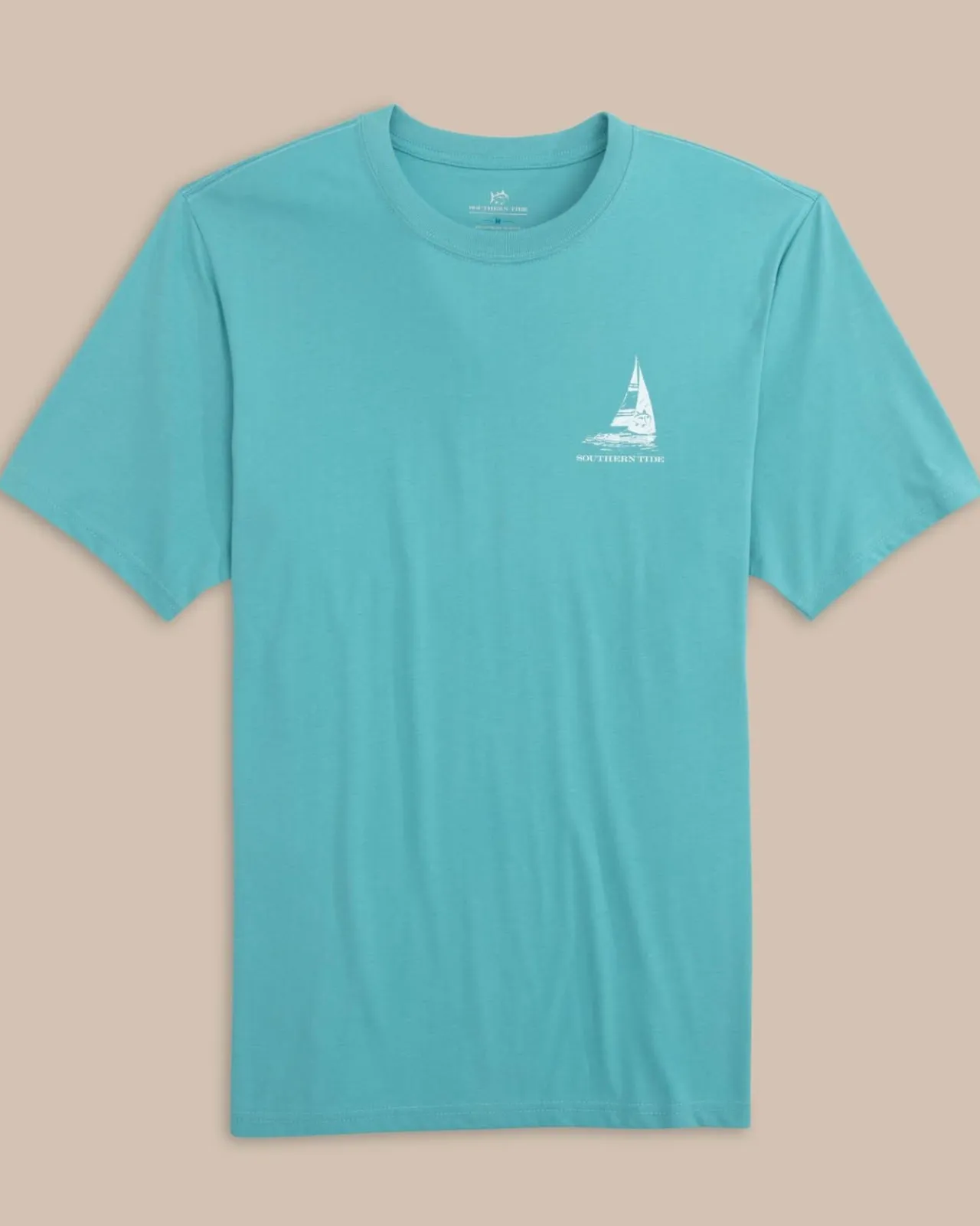 Set Sail For Comfortable Days In This Cotton-Blend Tee Featuring A Sailboat Graphic On The Back. Coastal Colors And Cool Construction Set You Up For Any Adventure.