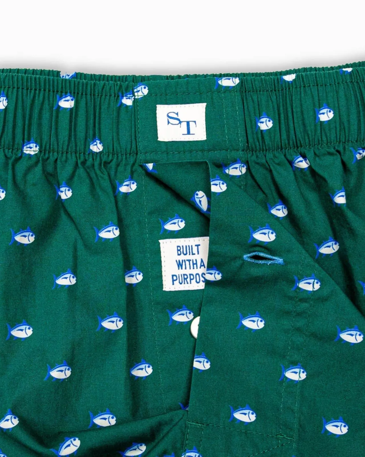 Soft Cotton. Comfortable Fit. This Classic Boxer Short Is All About The Skipjack – Shown In The Fabric, On The Front Label, And On The Laser Engraved Button. We Finish It Off With A Playful Catchphrase Sewn Into The Button Fly.