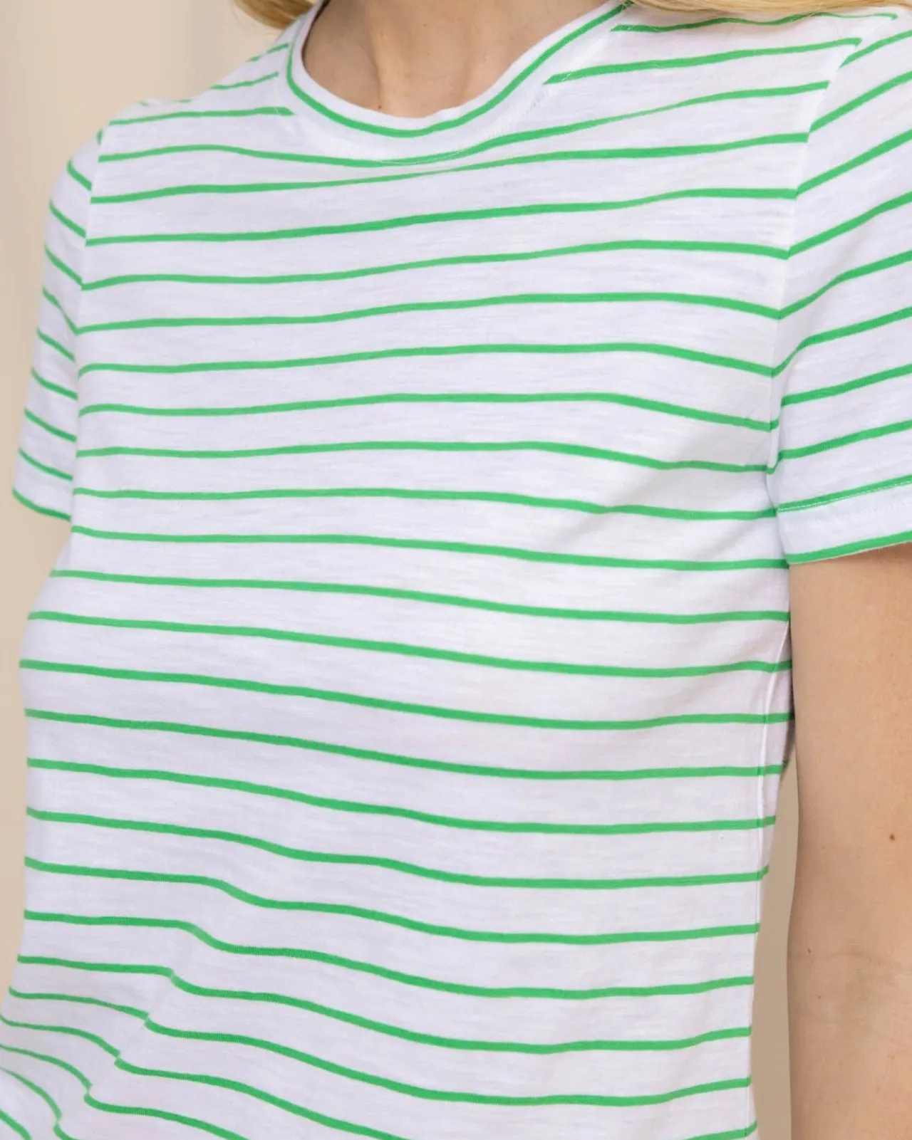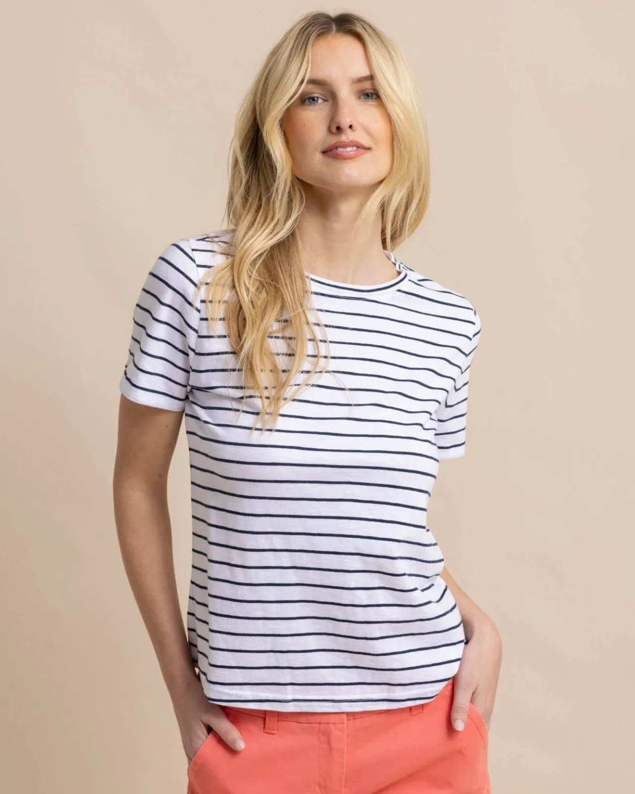 Coastal Comfort Is Easy To Achieve In A Soft And Standard Striped Tee. This Soft Cotton Crew Neck Serves As The Best Base Layer For An Optimal Oceanside Outfit.