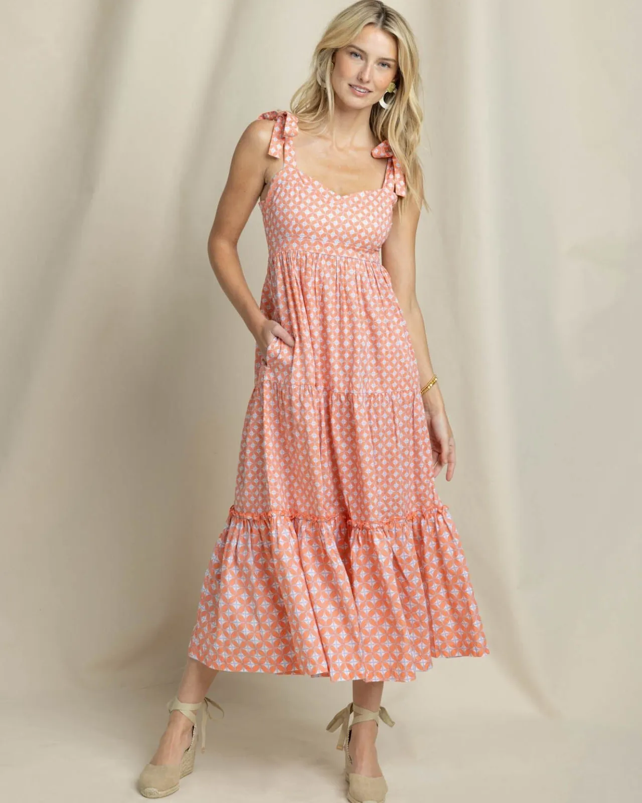 Take Sunny Style To The Max In The Sunset-Inspired Hues Of Our Modern Geometric Print Maxi Dress. Fashioned With The Feminine Flair Of Adjustable Tie Shoulders, A Sweetheart Neckline, And A Tiered Skirt With A Ruffle, You’Ll Be The Coastal Envy From Your Day Off To Date Night. Stitched From 100% Cotton, This Comfortable Dress Also Features Highly-Coveted Side-Seam Pockets.