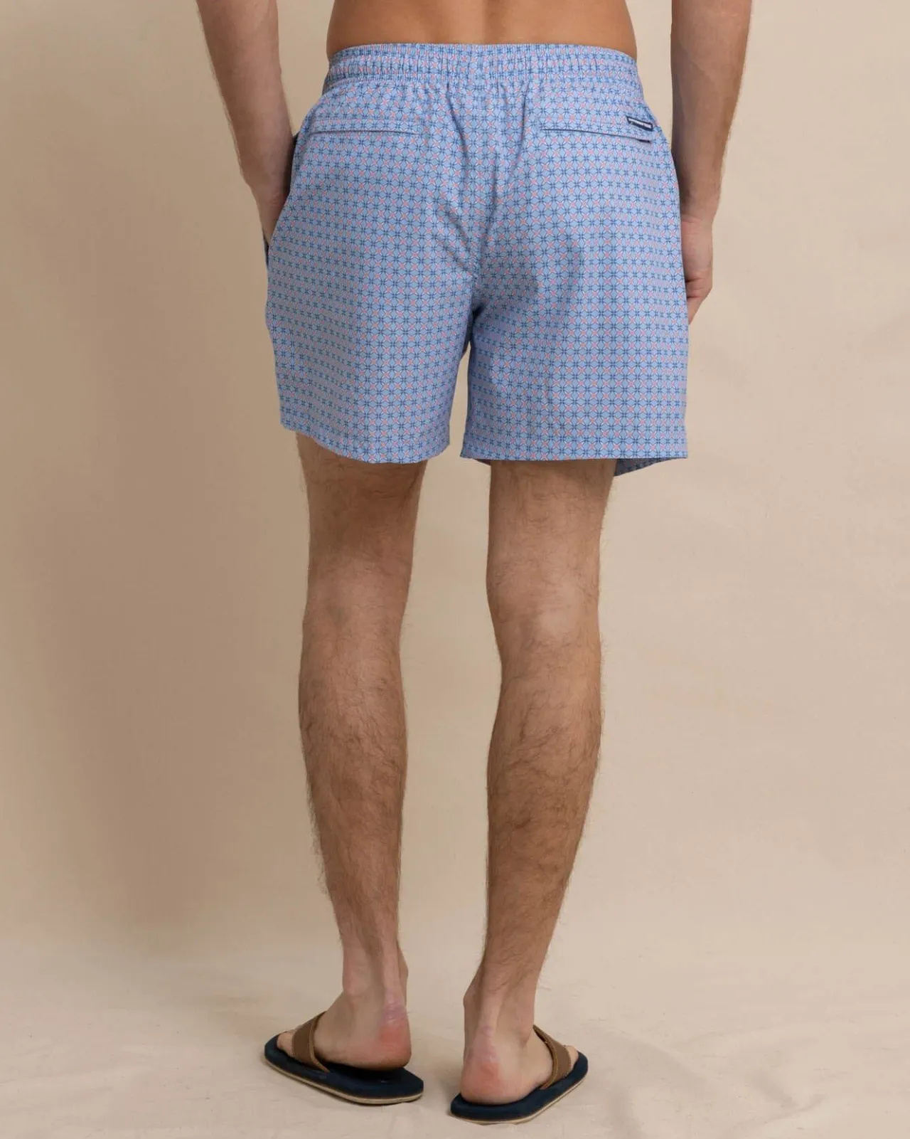 Add Artistic Flair To Your Pool Wear With This All-Over Geometric Print Featuring Seaside Sunset Hues. Formulated From Recycled Uv Protectant Materials, This 6″-Inseam Trunk Is Topped With A Fully Elasticated Waistband For A Fine Fit. With Plenty Of Pockets, Including A Zippered Back Pocket, This Trunk Transitions From Sea To Shore With Ease.