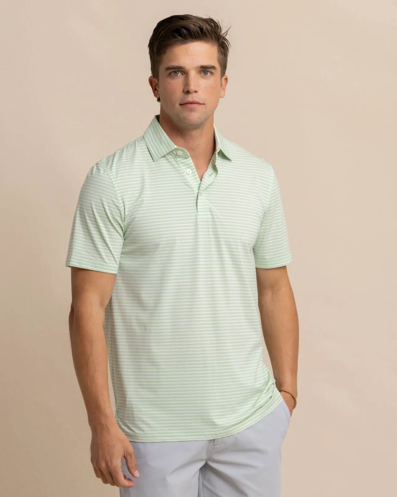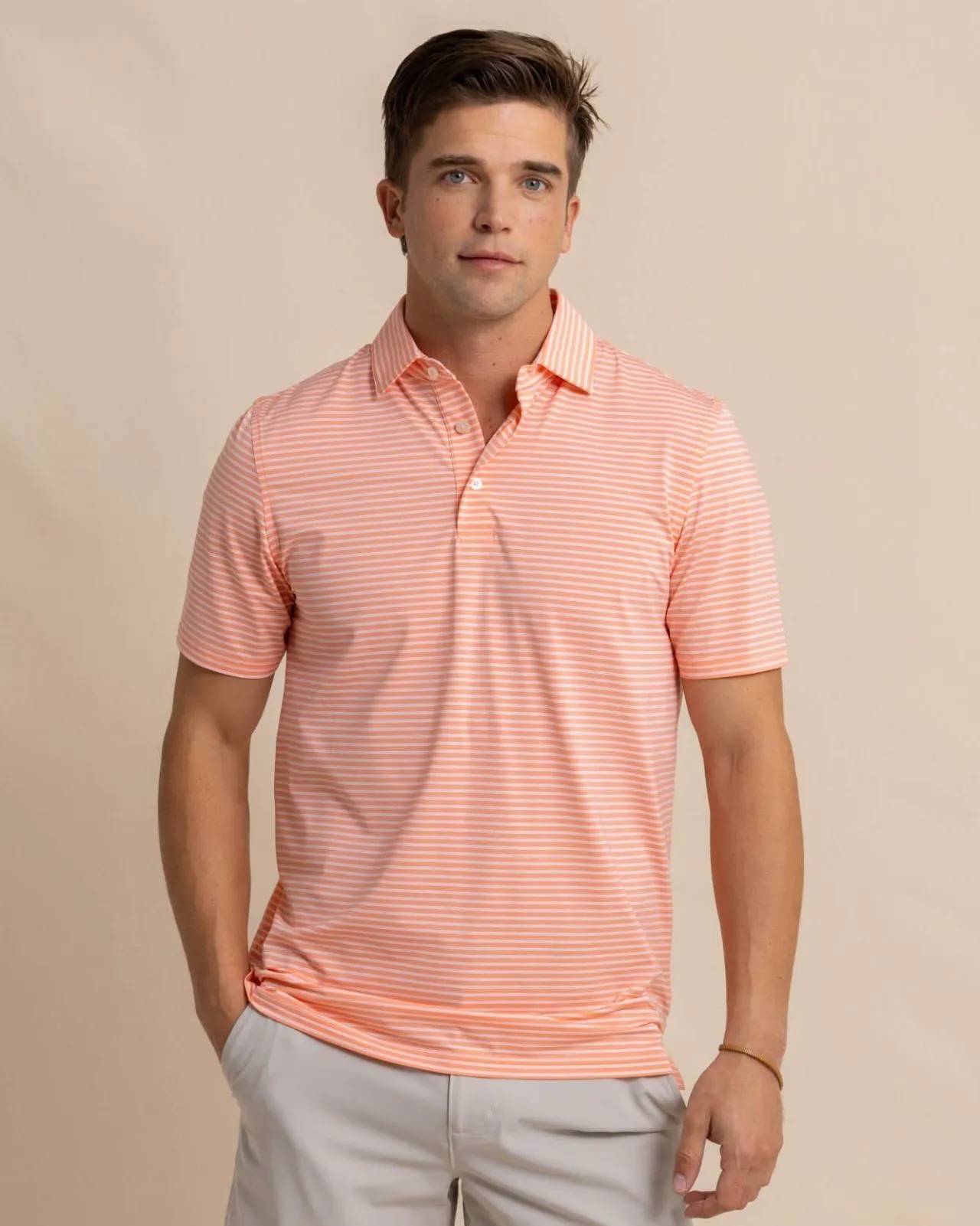Classic Stripes Blend With Modern Coastal Colors To Craft A Casual But Considered Polo. With Striking Color As Far As The Eye Can See, The Classic Three-Button Placket, Self-Collar, And Drop-Tail Hem Construction Keep It Feeling Sophisticated. Designed From Quick-Dry Material With Brrr° Cooling Technology, You’Ll Feel Ready For Whatever The Tide Washes In.