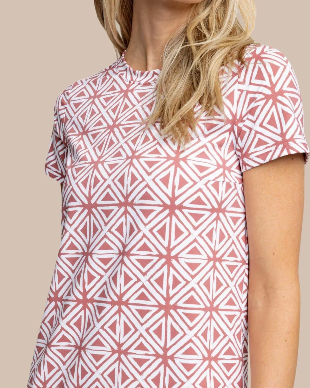 We’Re Taking T-Shirt Dresses To The Next Level. Chanelle Is The Ultimate In Chic Comfort With Short-Sleeves, A Flattering Crew-Neck, And An All-Over Geometric Print That Adds Undeniable Style To An Elegant Silhouette. Wicking, Uv-Protective Material Keeps You Cool And Comfortable While You Enjoy An Elevated Take On A Wardrobe Staple. Pair It With Simple White Sneakers For Day Trips Or Dress It Up With A Cardigan And Booties For Nights On The Town.