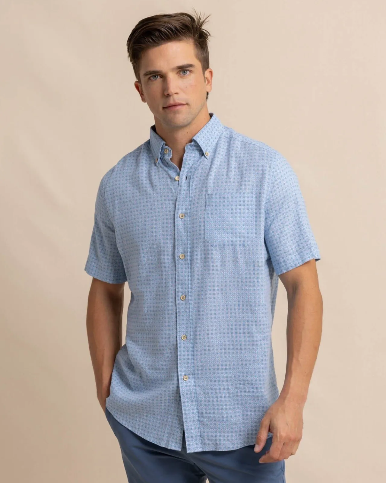 Our Classic Linen Rayon Sport Shirt Gets A Bold Makeover Thanks To The Lively White Lotus Print. Like Little Compasses Pointing The Way, You’Ll Be Able To Live In The Moment Without Breaking A Sweat.