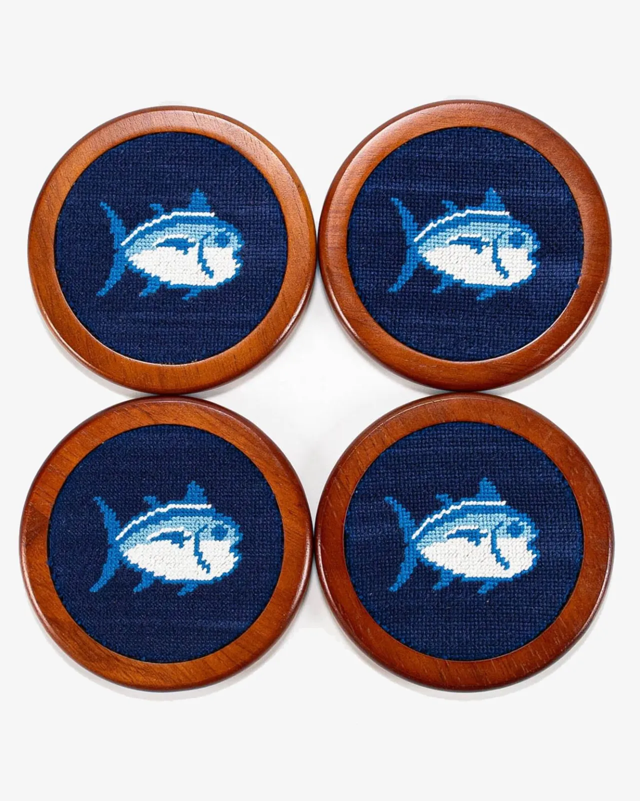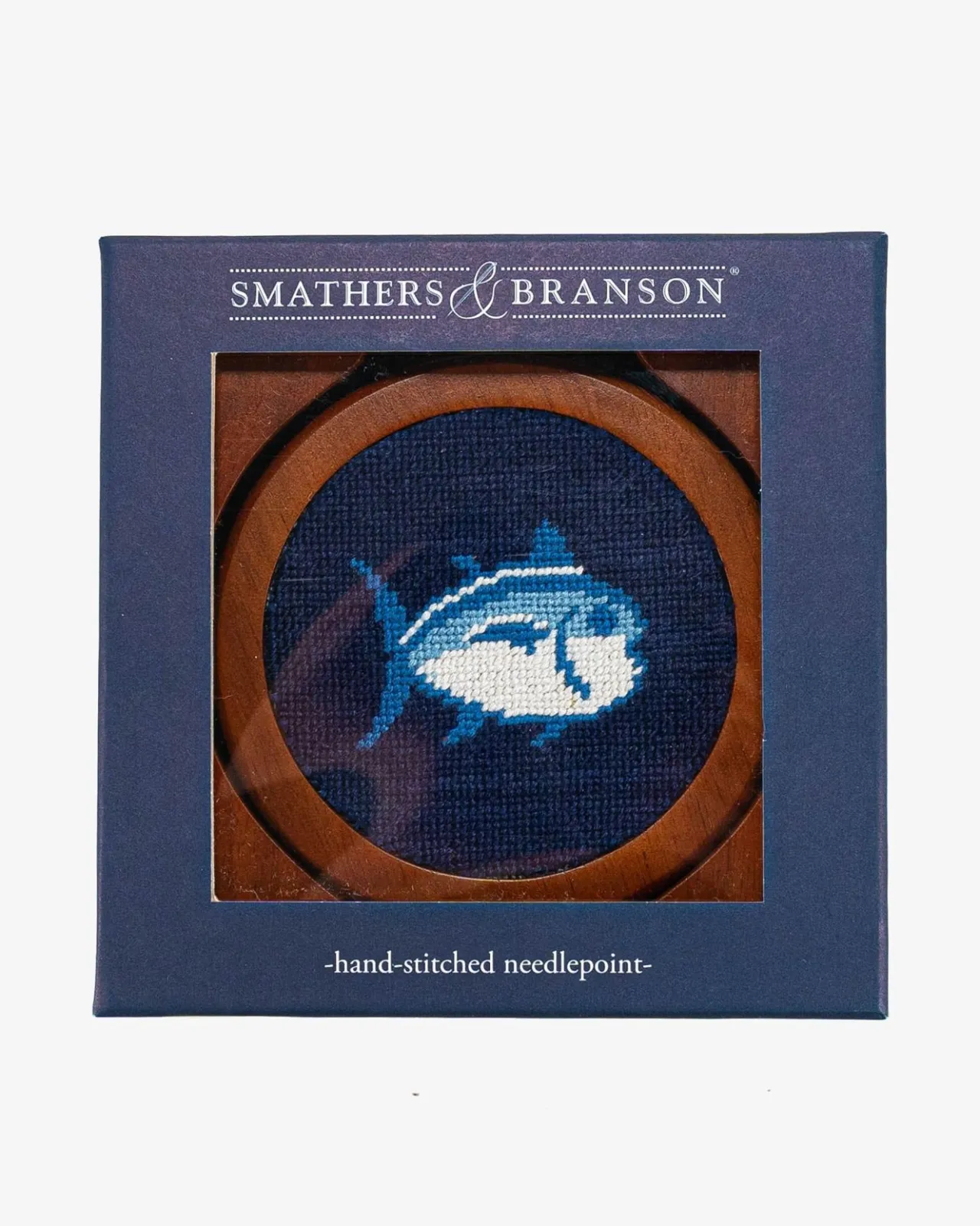 Add Classic, Coastal Style To Your Space With Our Smathers And Branson Needlepoint Coasters. Packaged In Sets Of Four Within A Polished Wooden Holder.