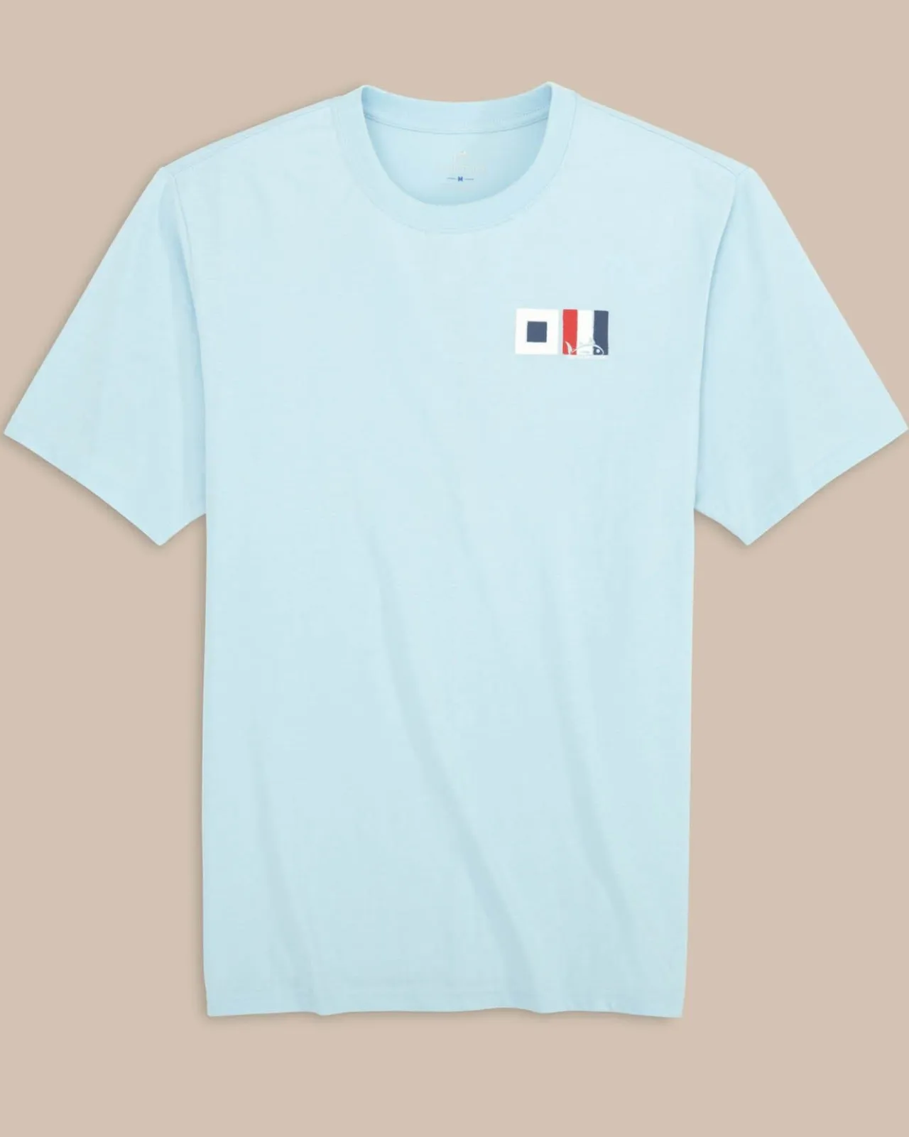 Understated And Undeniably Comfortable, This Short-Sleeve T-Shirt Symbolizes Coastal Style With The Aid Of Small Nautical Flags On The Left Chest. Crafted From A Cotton Blend With A Rib Collar, This Shirt Stands For Casual Comfort.