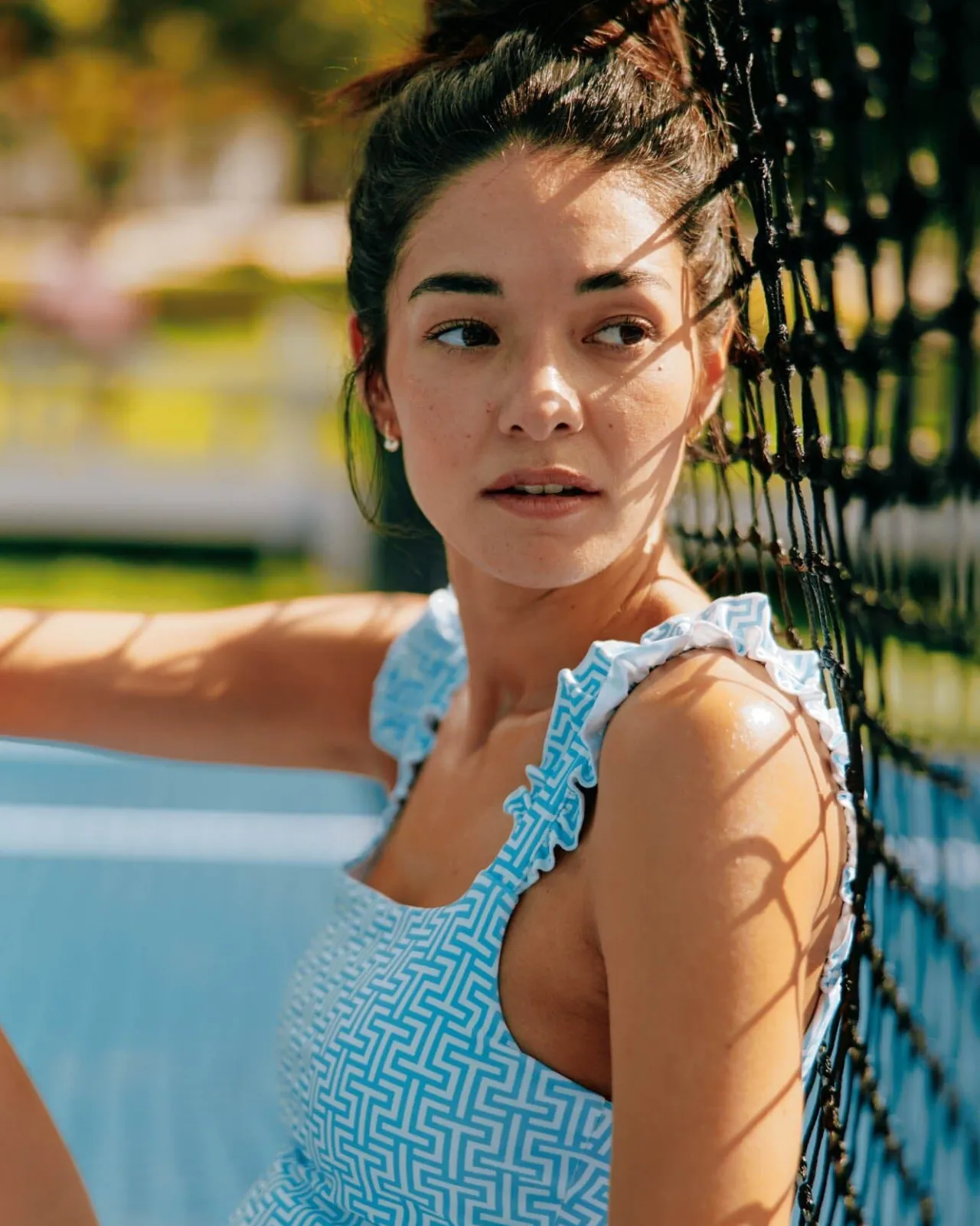 Modern Style Fuses With Feminine Performance In This Sleeveless Stretch Tank. The All-Over Geometric Print Feels Fresh, While The Ruffled Shoulder Straps Keep Your Look Flowy. You’Ll Be Dressed For Success In This Wicking, Cooling Top That Matches With Our Katlyn Skort In The Same Print.