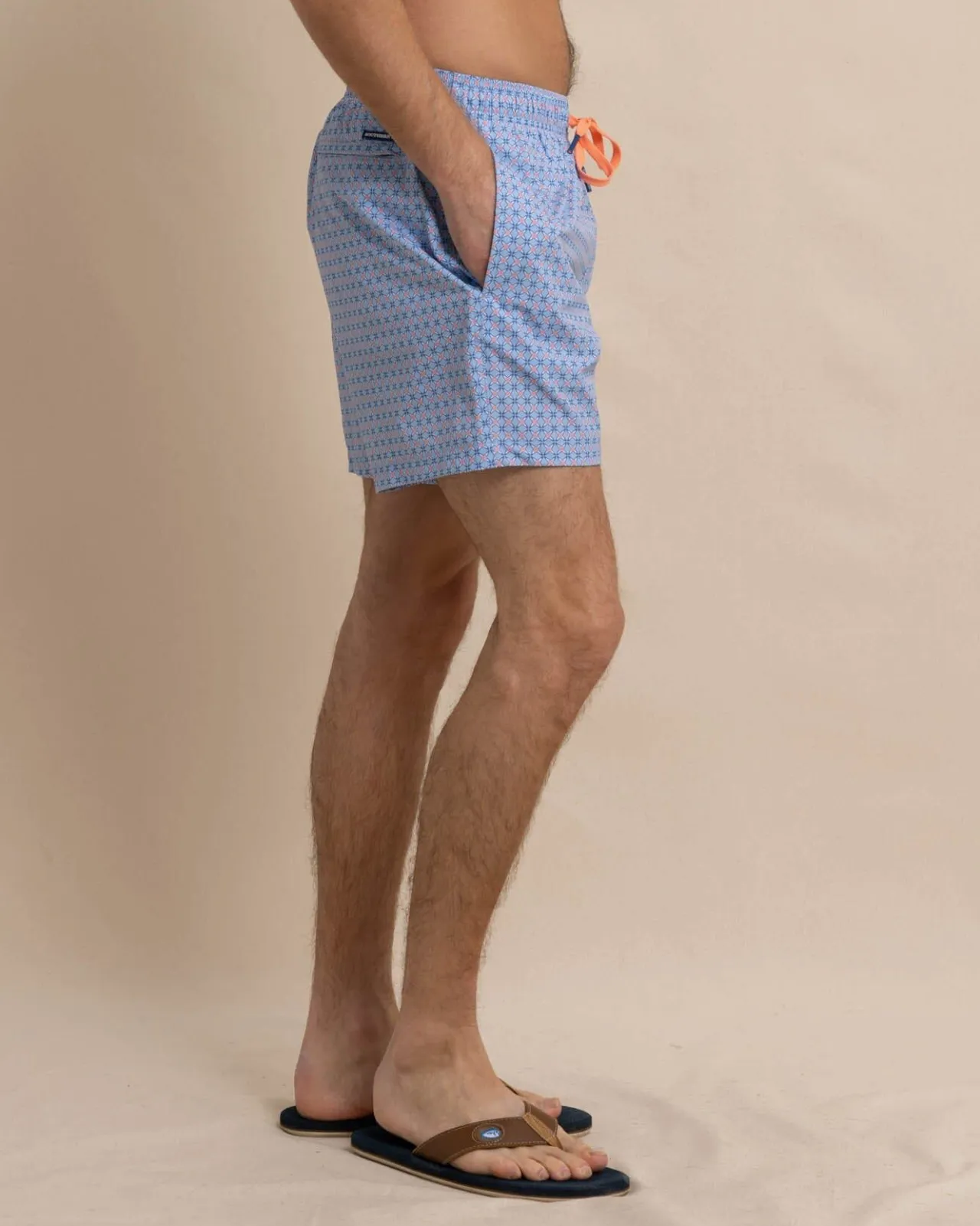 Add Artistic Flair To Your Pool Wear With This All-Over Geometric Print Featuring Seaside Sunset Hues. Formulated From Recycled Uv Protectant Materials, This 6″-Inseam Trunk Is Topped With A Fully Elasticated Waistband For A Fine Fit. With Plenty Of Pockets, Including A Zippered Back Pocket, This Trunk Transitions From Sea To Shore With Ease.